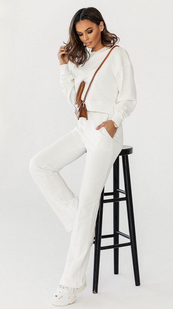 Śmietankowe spodnie dresowe z przeszyciami Lamia