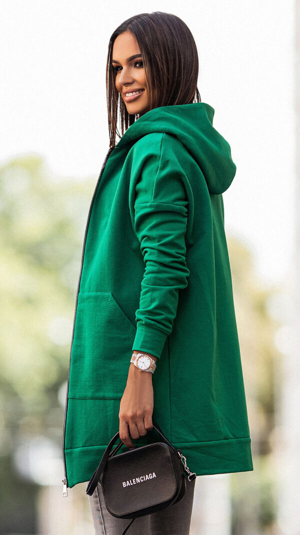 Zielona bluza Shannon z zamkiem i przeszyciami