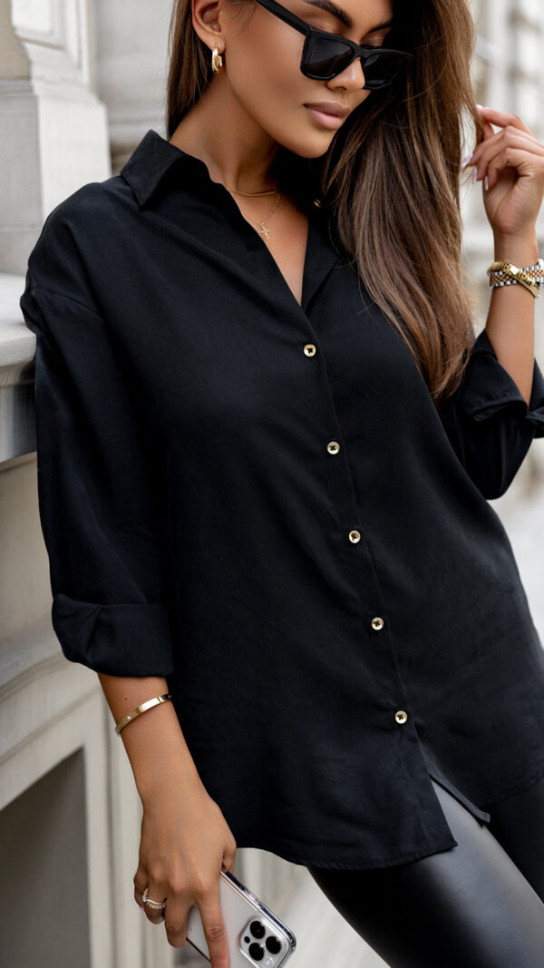 Czarna koszula Emilie ze złotymi guzikami