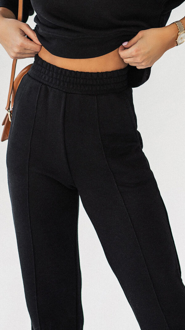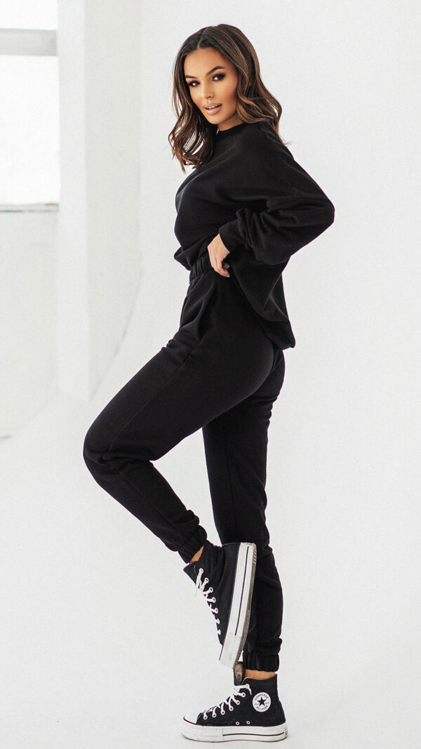 Czarny kombinezon z szerokimi nogawkami Fantastic