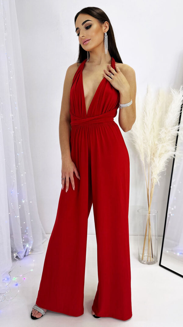 Czerwony kombinezon z szerokimi nogawkami Fantastic