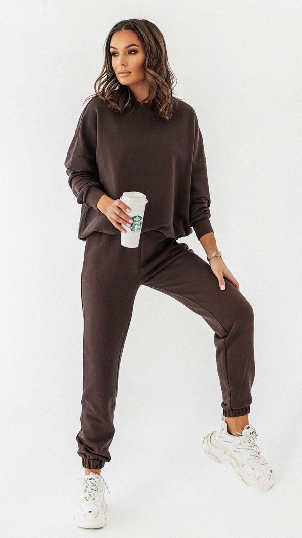 Czekoladowa bluza Shannon z zamkiem i przeszyciami